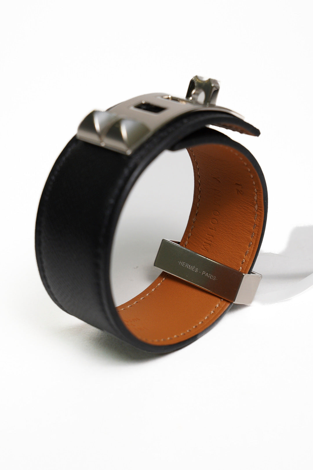 Hermes 愛馬仕EPSOM皮 鉚釘銀釦CDC手環-黑色