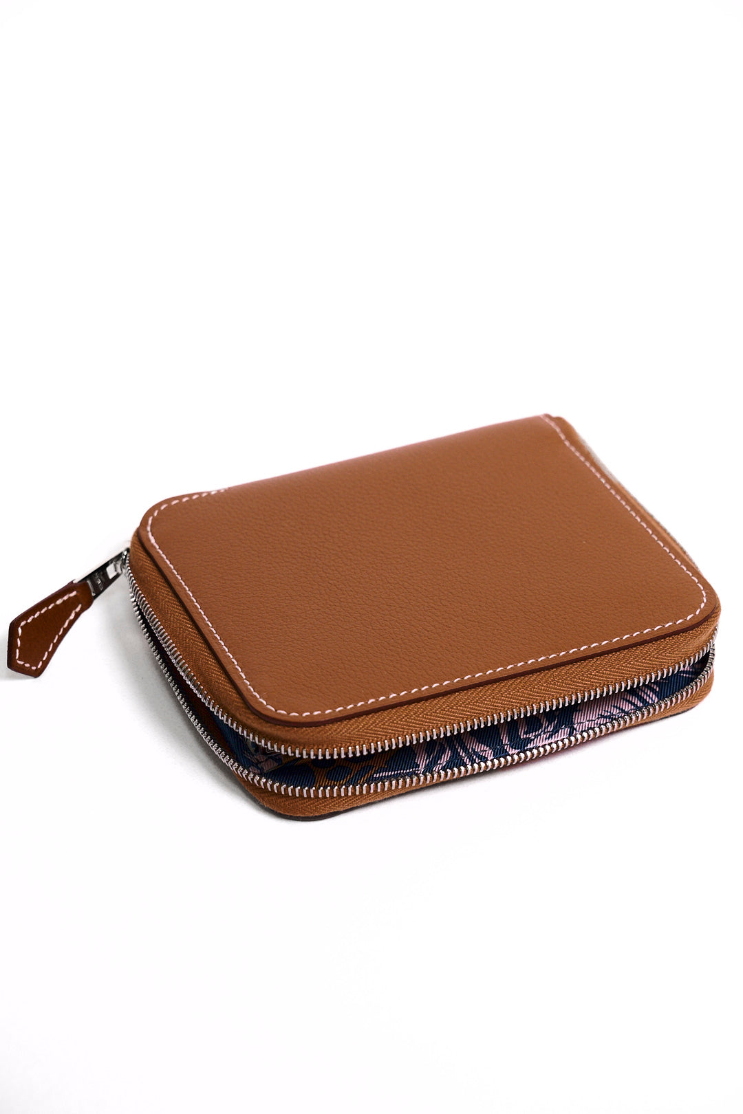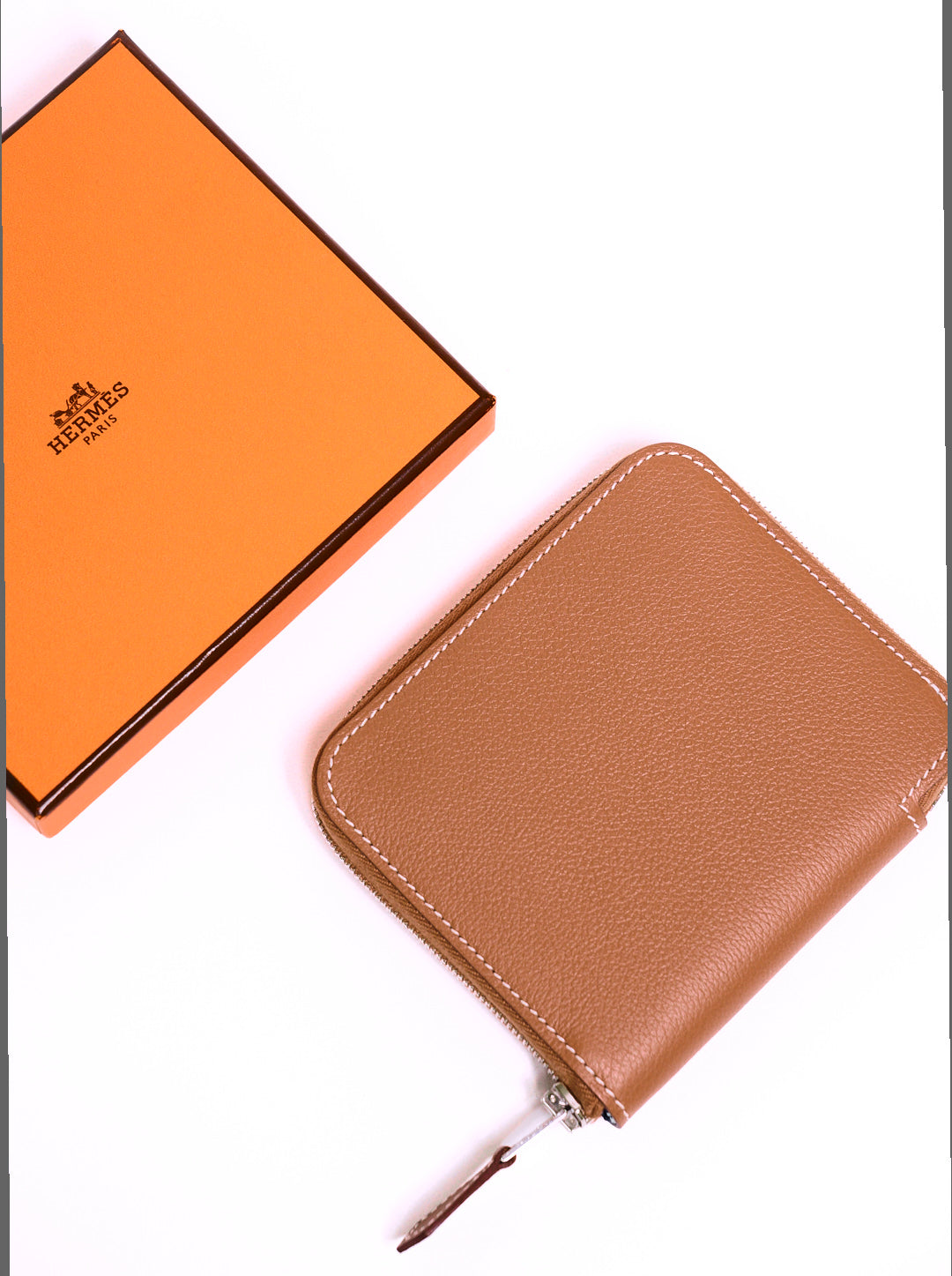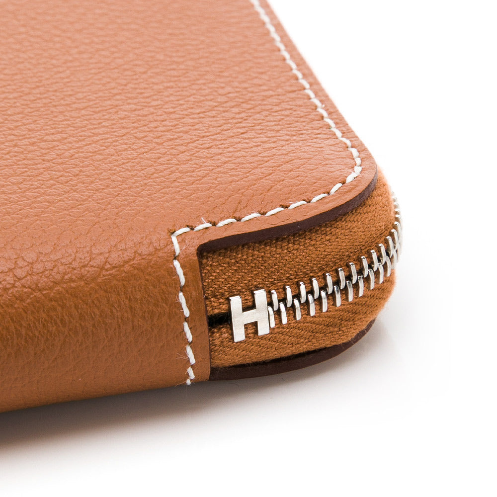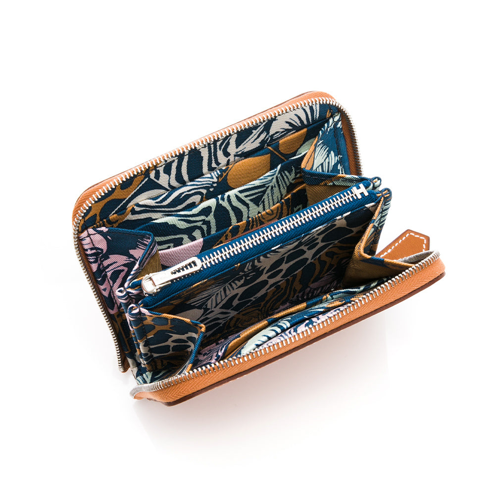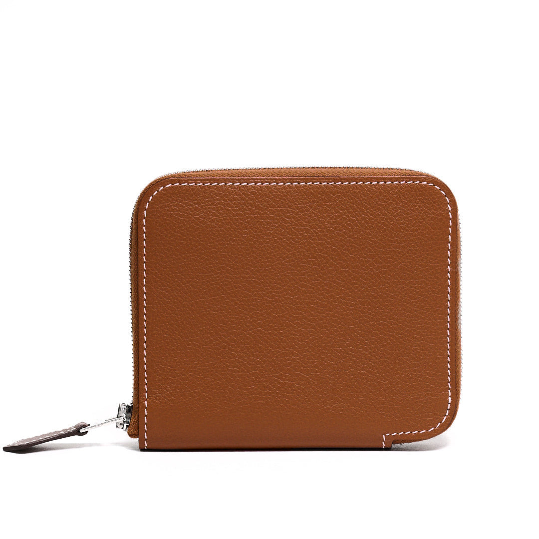 HERMES 牛皮拉鍊絲巾短夾 (褐色)(棕色)